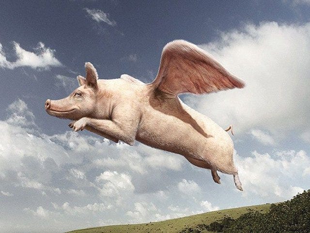 The photo is fake. The camera does lie. Pigs don’t fly. Even if they’re “novel pigs.”